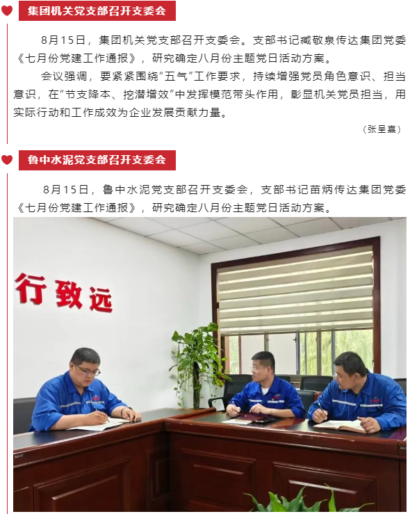 【黨建】集團(tuán)機(jī)關(guān)黨支部、魯中水泥黨支部、重山光電黨支部分別召開支委會(huì)