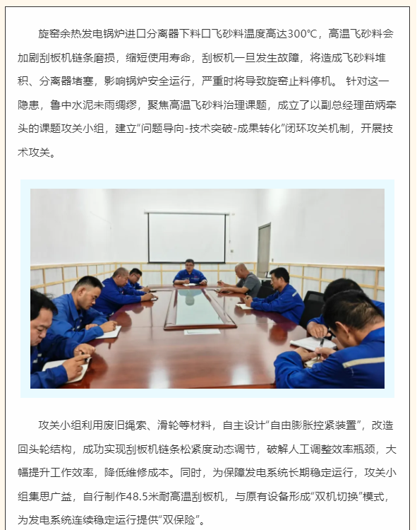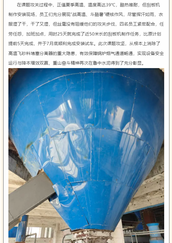 高溫“烤”驗下的攻關答卷——魯中水泥攻克高溫飛砂料治理難題