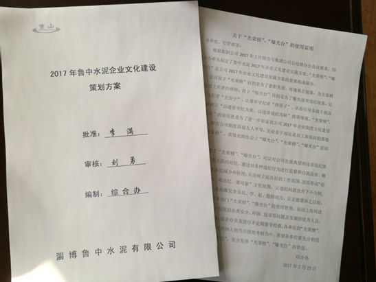 魯中水泥積極落實(shí)企業(yè)文化建設(shè) 設(shè)立“光榮榜”“曝光臺(tái)”