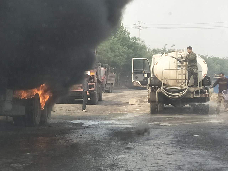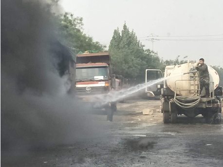 現(xiàn)場(chǎng)濃煙滾滾,貨車輪胎正在燃燒,整個(gè)底盤也暴露在大火下,火勢(shì)正在蔓延。時(shí)間就是金錢,張慎明立即開展救援,開啟灑水車后方高壓水槍進(jìn)行滅火,火勢(shì)得到一定控制。但貨車內(nèi)胎仍在燃燒,他立即與司機(jī)一同接上水管,將水管直接深入輪胎中,將火撲滅。經(jīng)過(guò)多方努力,大火最終撲滅,初步計(jì)算挽回經(jīng)濟(jì)損失10萬(wàn)元以上。貨車司機(jī)握住張慎明的手表達(dá)了深深的感謝,現(xiàn)場(chǎng)人員也紛紛為他點(diǎn)贊。張慎明說(shuō):“你們不用感謝我,還是感謝重山集團(tuán)吧!”說(shuō)完便離開了現(xiàn)場(chǎng)....