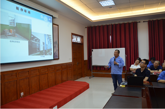 集團人力與運營部張威經(jīng)理以PPT形式通報集團5S現(xiàn)場改善活動進度