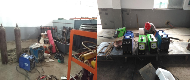 2.3供料車間維修房整理:正在焊制部分工具臺。