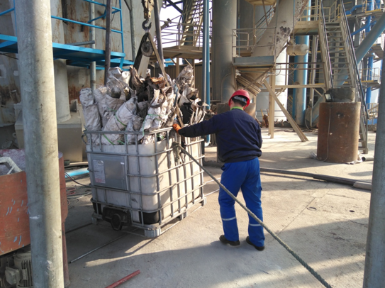 操作工曹世強(qiáng)正在吊運(yùn)廢噸包