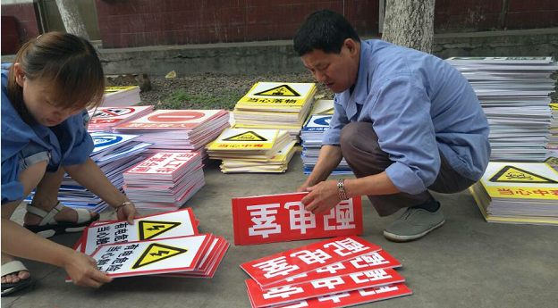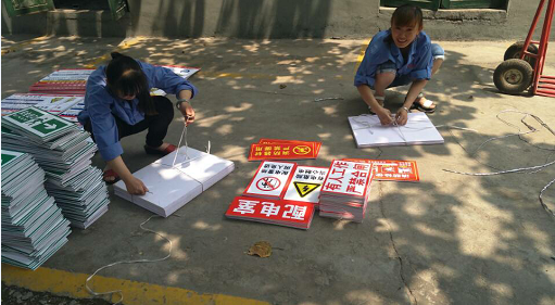 將角角落落的標(biāo)識(shí)牌集中收集到倉庫院內(nèi)