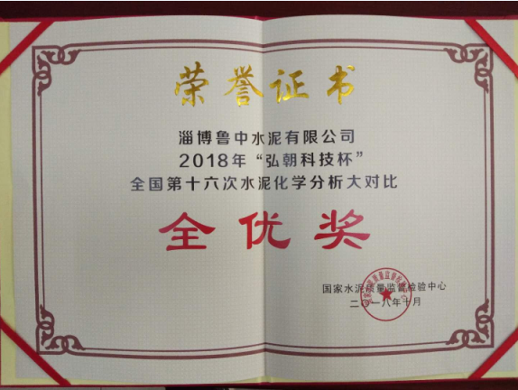近日,魯中水泥榮獲由國家水泥質(zhì)量監(jiān)督檢驗中心頒發(fā)的2018年“弘朝科技杯”全國第十六次水泥化學(xué)分析大對比全優(yōu)獎。