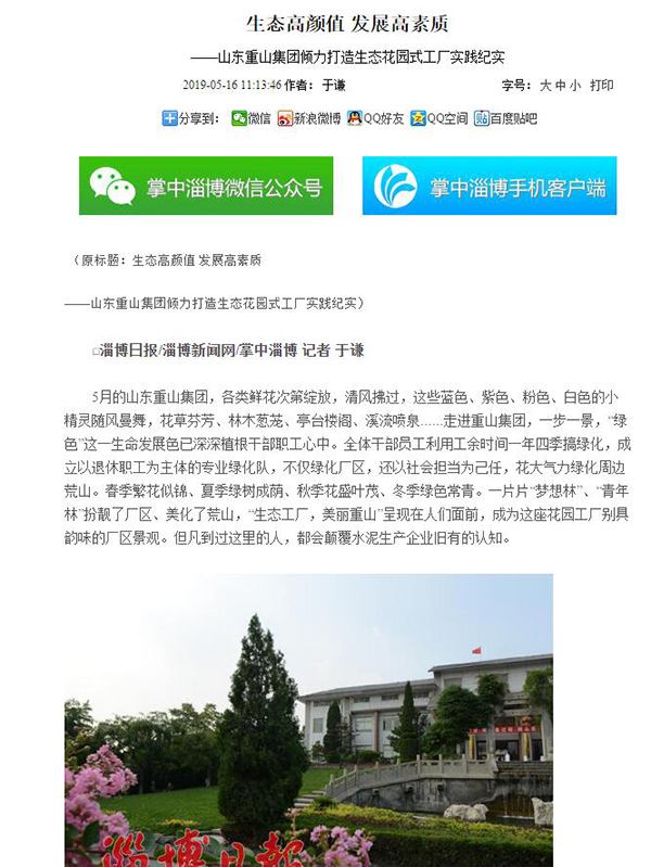 生態(tài)高顏值 發(fā)展高素質(zhì) —淄博新聞媒體刊發(fā)重山集團(tuán)打造生態(tài)花園式工廠實踐紀(jì)實