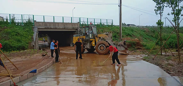 7月25日下午,天氣突變,暴雨傾盆而下。集團(tuán)總務(wù)處主任王宏憑經(jīng)驗(yàn)馬上意識(shí)到村北橋洞內(nèi)可能積水,造成交通隱患,隨即,王宏立即組織人員冒著大雨趕到橋洞現(xiàn)場,經(jīng)勘查,傾盆的暴雨不斷的沖刷著周邊的田地,大量的泥漿堆積在橋洞下面,對職工上下班交通帶來嚴(yán)重影響。王宏一邊派人在路口引導(dǎo)行人走另一條安全道路,一邊組織人員對遭遇上下班險(xiǎn)情的職工進(jìn)行救援,同時(shí),協(xié)調(diào)鏟車到橋洞下面清理淤泥,并安排總務(wù)處的員工拿著鐵锨、掃帚奮力清理現(xiàn)場。經(jīng)過大家近2個(gè)小時(shí)的共同努力,堵塞的橋洞得到及時(shí)疏通,險(xiǎn)情得到及時(shí)排除,保證了職工和行人的交通順暢和安全。