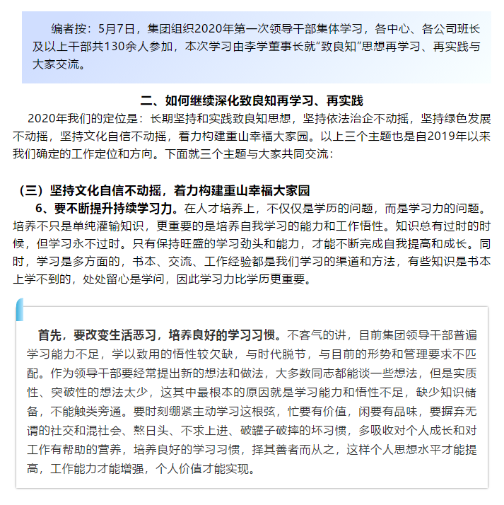 【學(xué)講話 促發(fā)展】“致良知”思想再學(xué)習(xí)、再實踐——李學(xué)董事長在2020年首次領(lǐng)導(dǎo)干部集體學(xué)習(xí)上的講話(二十六)