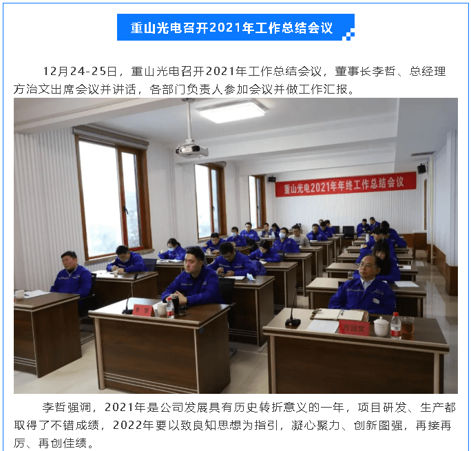 重山光電召開2021年工作總結會議