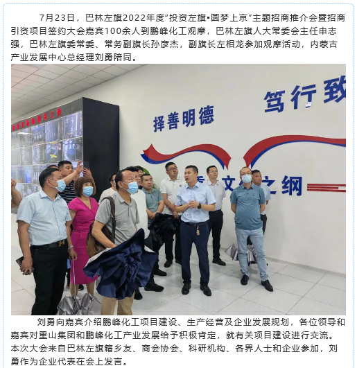 【頭條】巴林左旗 “投資左旗?圓夢(mèng)上京”主題招商推介會(huì)嘉賓到鵬峰化工觀摩