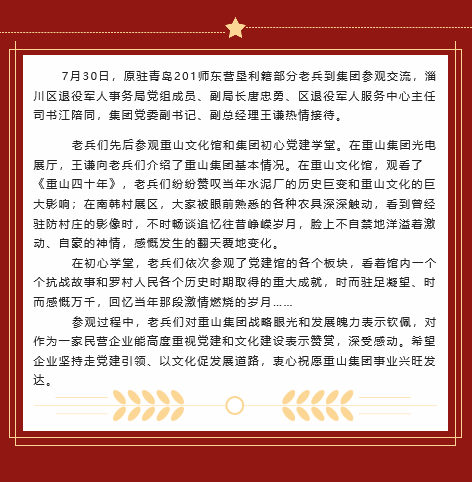 【八一特刊】憶崢嶸歲月 看今朝輝煌——東營籍老兵到集團參觀交流