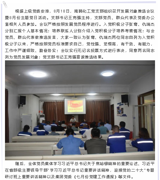【黨建】南韓化工黨支部召開發(fā)展黨員推選會(huì)議