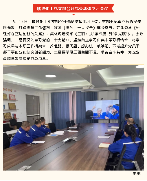 【黨建】鵬峰化工黨支部召開黨員集體學(xué)習(xí)會(huì)議、魯蒙水泥黨支部召開2022年度組織生活會(huì)