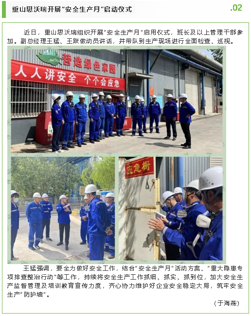 【安全生產(chǎn)月專欄】黃驊三陽組織“總經(jīng)理帶頭講安全”活動、重山思沃瑞開展“安全生產(chǎn)月”啟動儀式