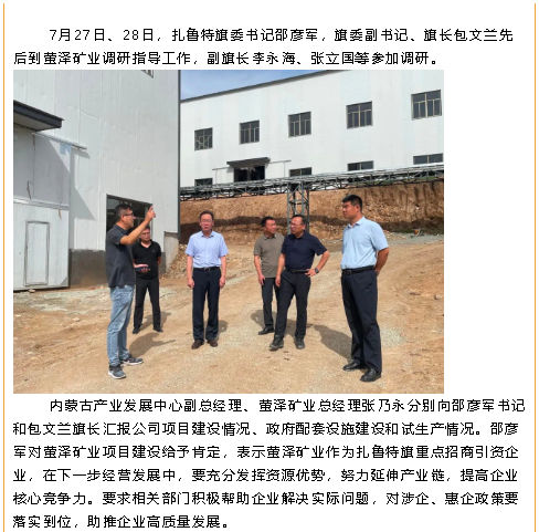 扎魯特旗領(lǐng)導(dǎo)到螢澤礦業(yè)調(diào)研