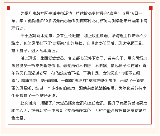【頭條】志愿服務(wù)顯擔(dān)當(dāng) 清除雜草正當(dāng)時——集團黨委組織黨員志愿服務(wù)活動