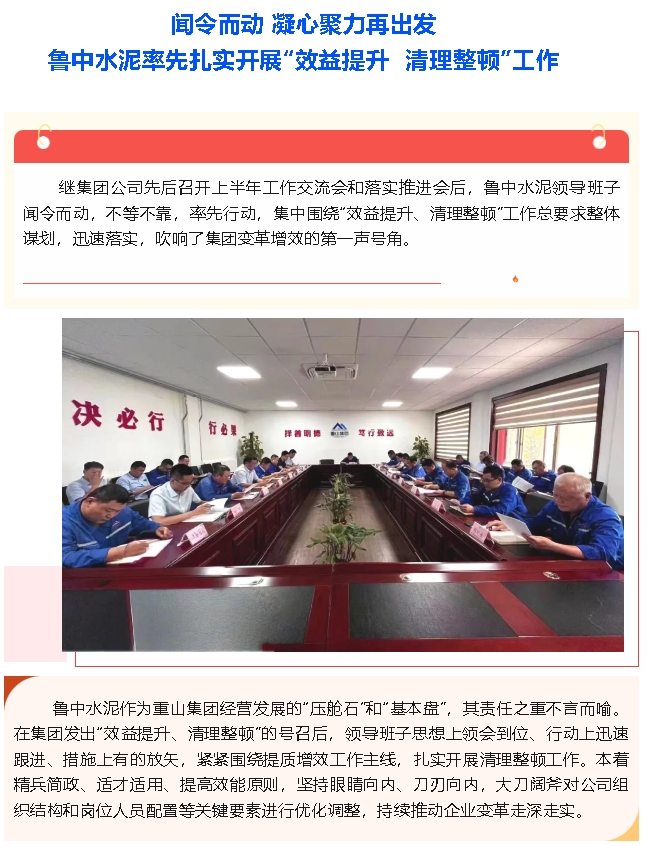 【頭條】聞令而動(dòng) 凝心聚力再出發(fā)——魯中水泥率先扎實(shí)開展“效益提升 清理整頓”工作