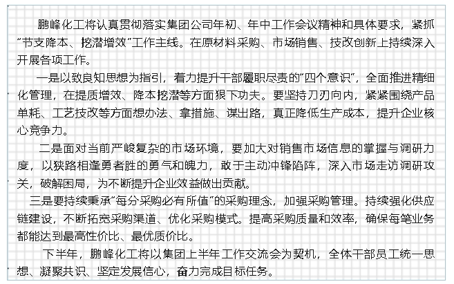 【貫徹落實年中會議精神】下半年怎么干——鵬峰化工