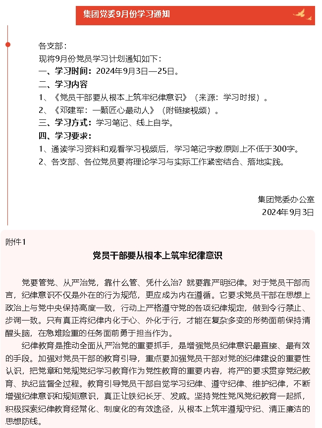 【通知】集團黨委9月份學(xué)習(xí)通知