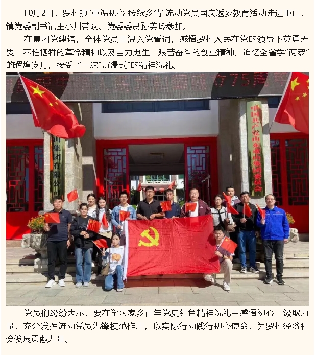 【黨建】鎮(zhèn)流動黨員國慶返鄉(xiāng)教育活動走進(jìn)重山