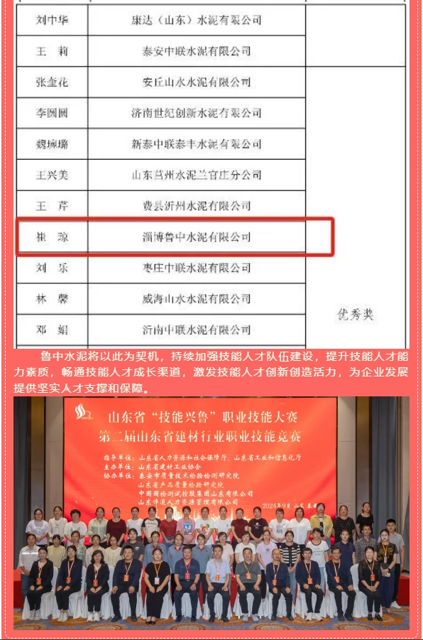 【榮譽(yù)】魯中水泥李豐云、崔瓊榮獲“技能興魯”技能大賽二等獎(jiǎng)和優(yōu)秀獎(jiǎng)