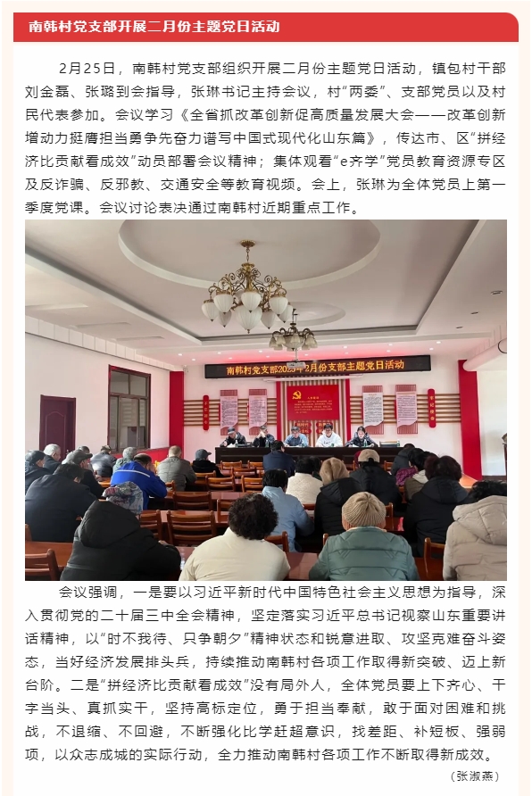 【黨建】南韓村黨支部、魯中水泥黨支部分別開展二月份主題黨日活動