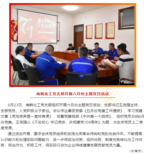 【黨建】南韓化工黨支部開展主題黨日活動(dòng)、魯蒙水泥黨支部召開支委會(huì)