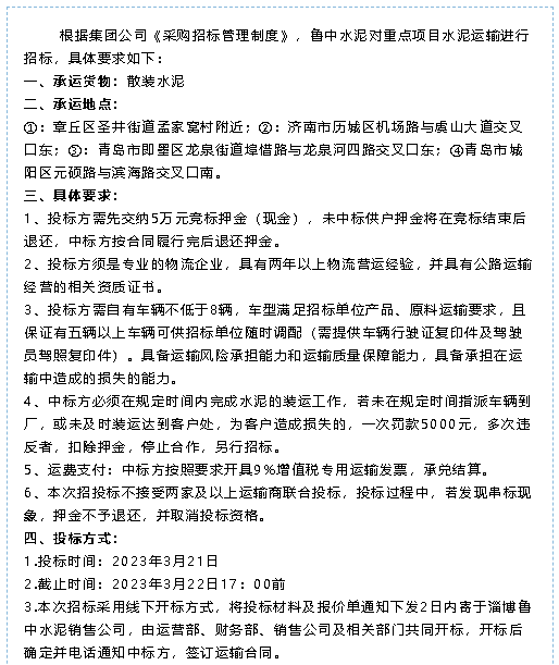 【招標(biāo)公告】魯中水泥