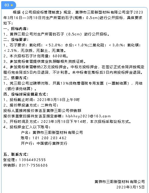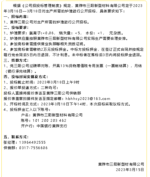 【招標(biāo)公告】黃驊三陽粉煤灰、爐渣、石子招標(biāo)