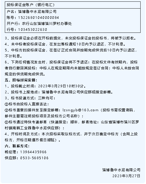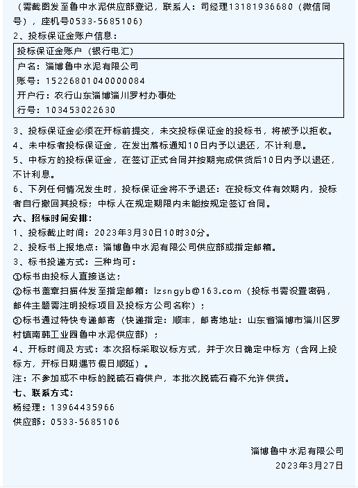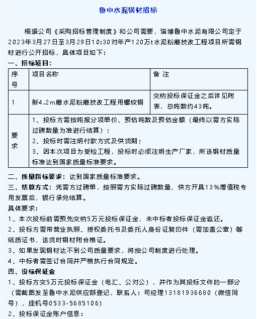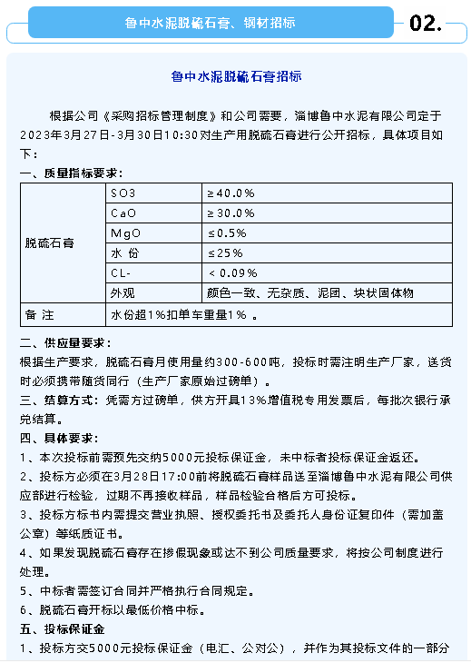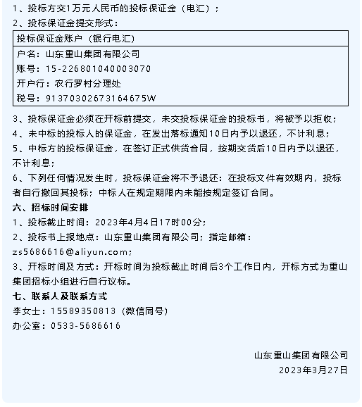 【招標(biāo)公告】重山集團、魯中水泥、魯蒙水泥