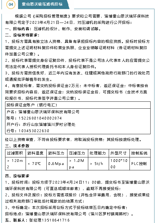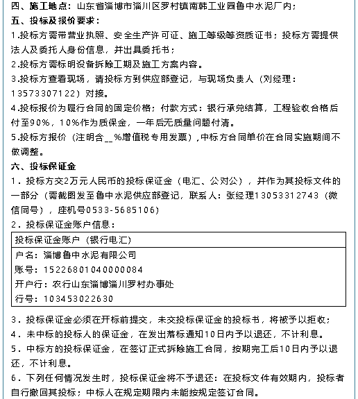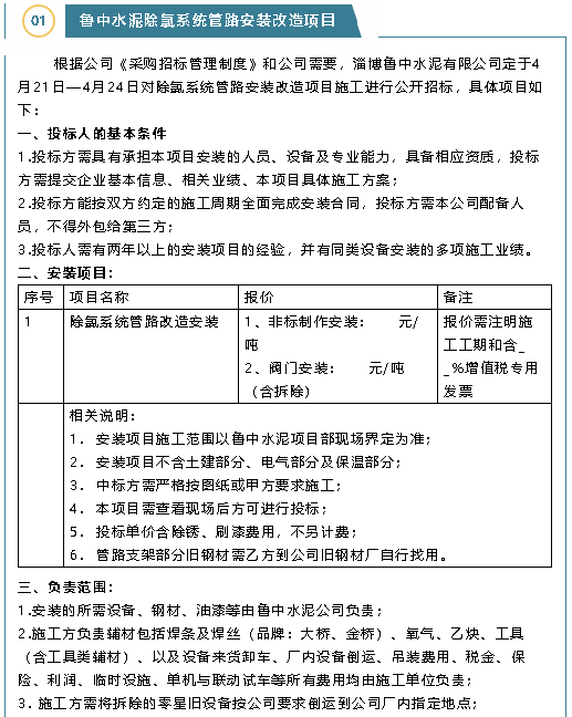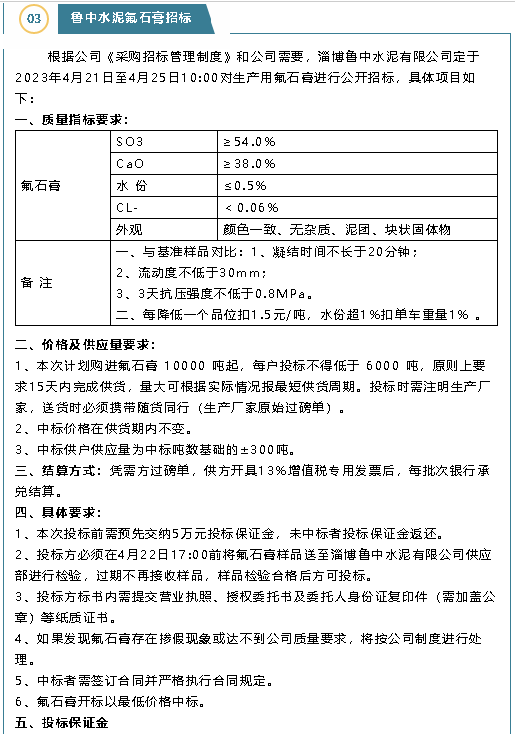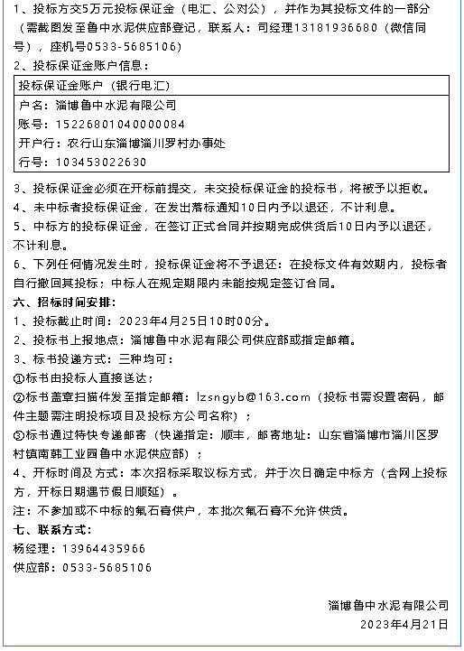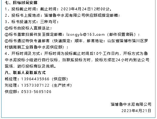 【招標公告】魯中水泥、重山思沃瑞