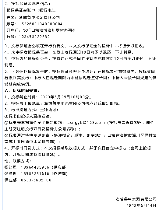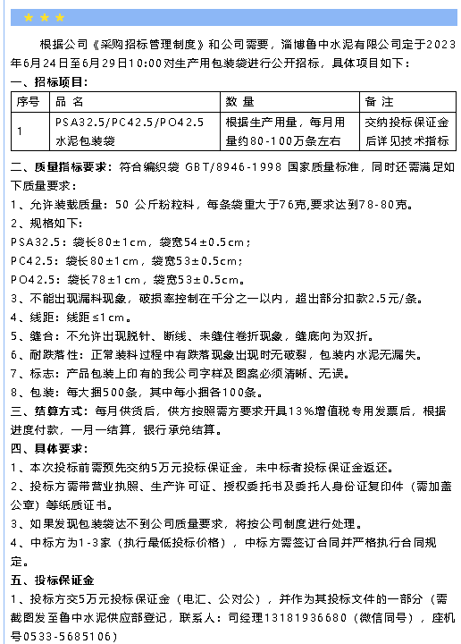 【招標(biāo)公告】魯中水泥
