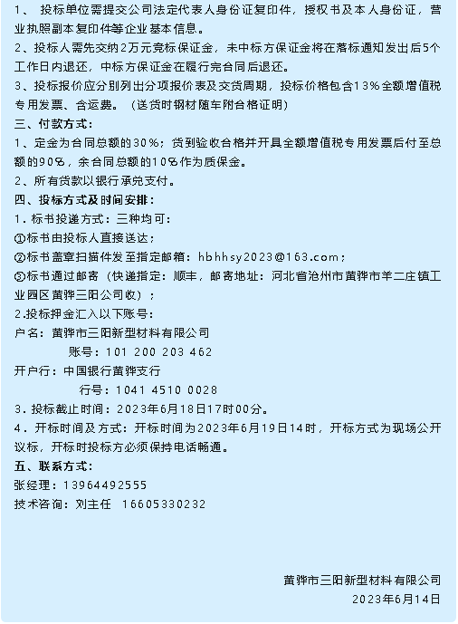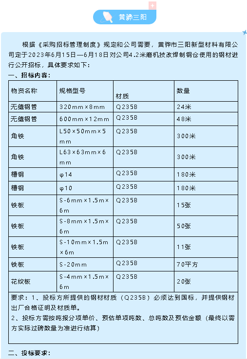 【招標(biāo)公告】魯中水泥、黃驊三陽(yáng)