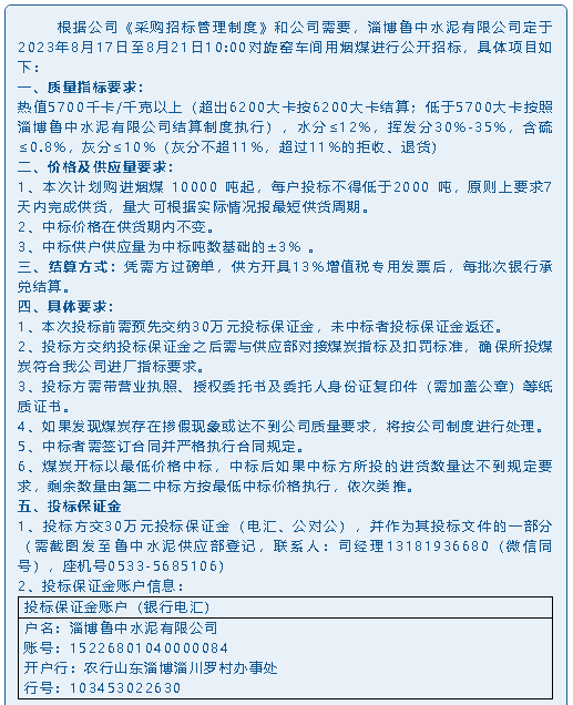 【招標(biāo)公告】魯中水泥