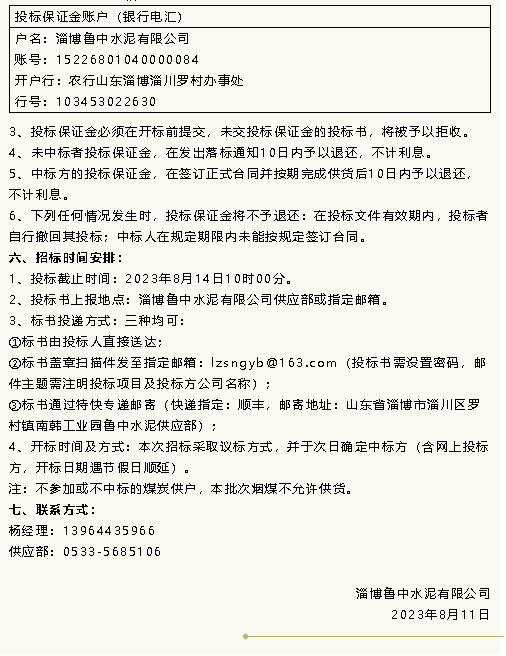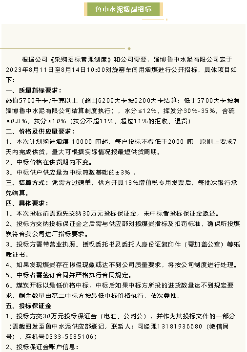 【招標(biāo)公告】魯中水泥、鵬峰化工