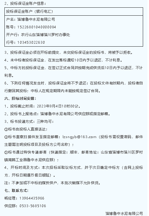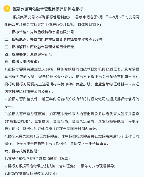 【招標(biāo)公告】魯中水泥煙煤、魯蒙水泥兩化融合管理體系貫標(biāo)評定招標(biāo)