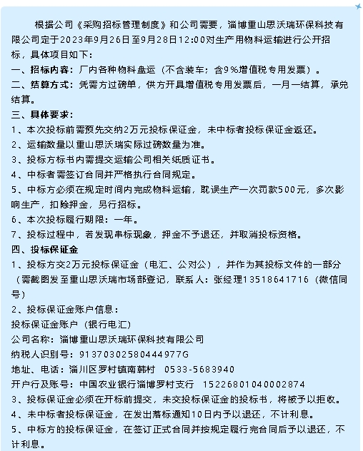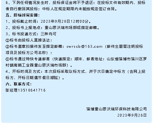 【招標(biāo)公告】重山思沃瑞