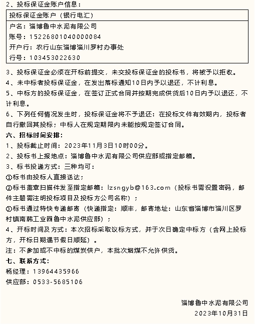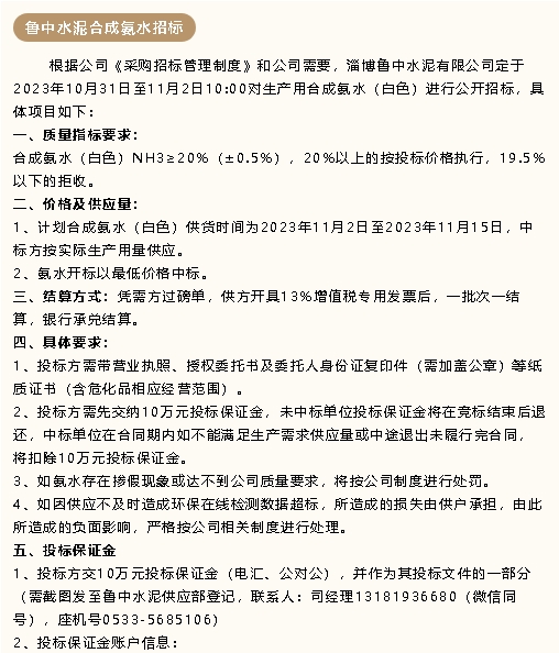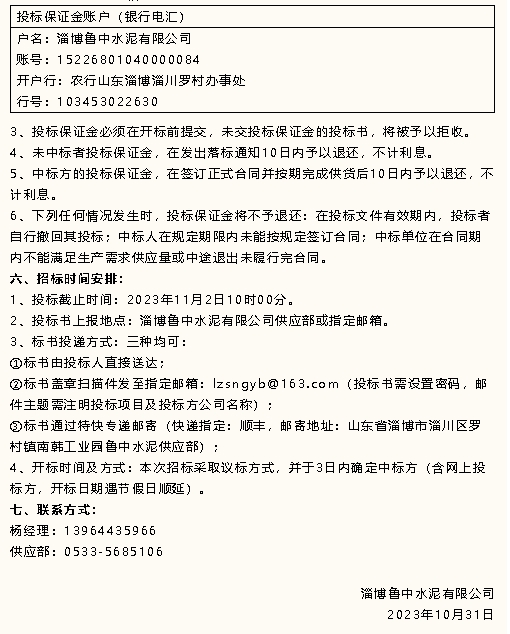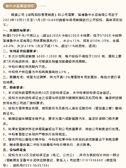 【招標公告】魯中水泥