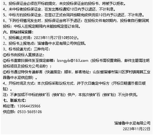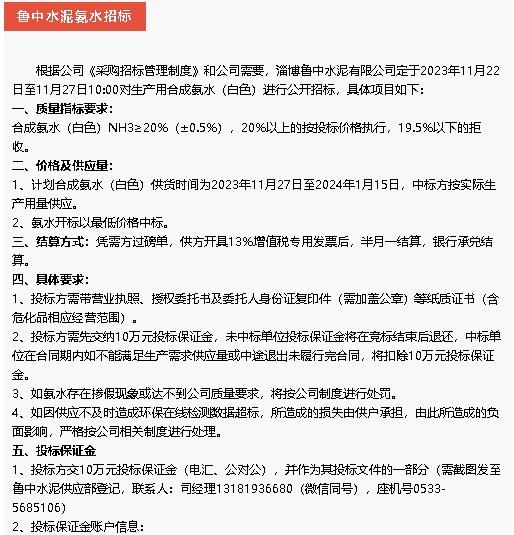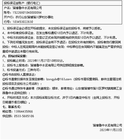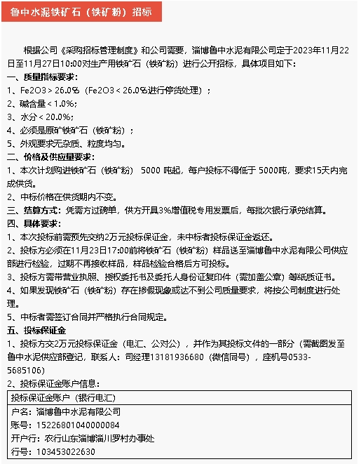 【招標(biāo)公告】魯中水泥