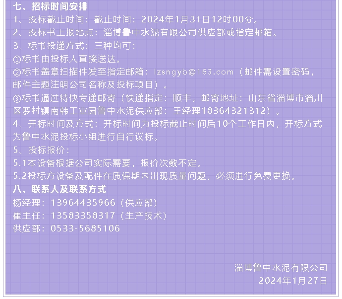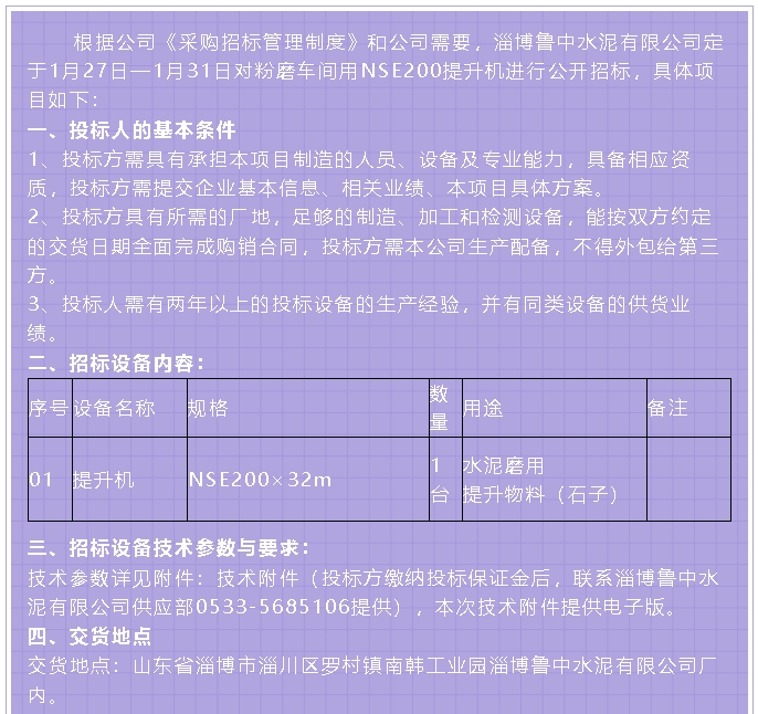 【招標(biāo)公告】魯中水泥