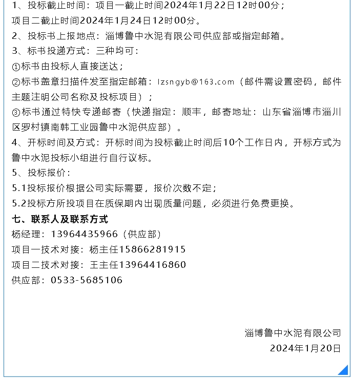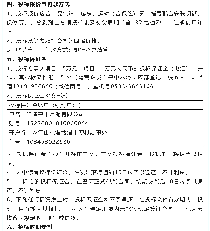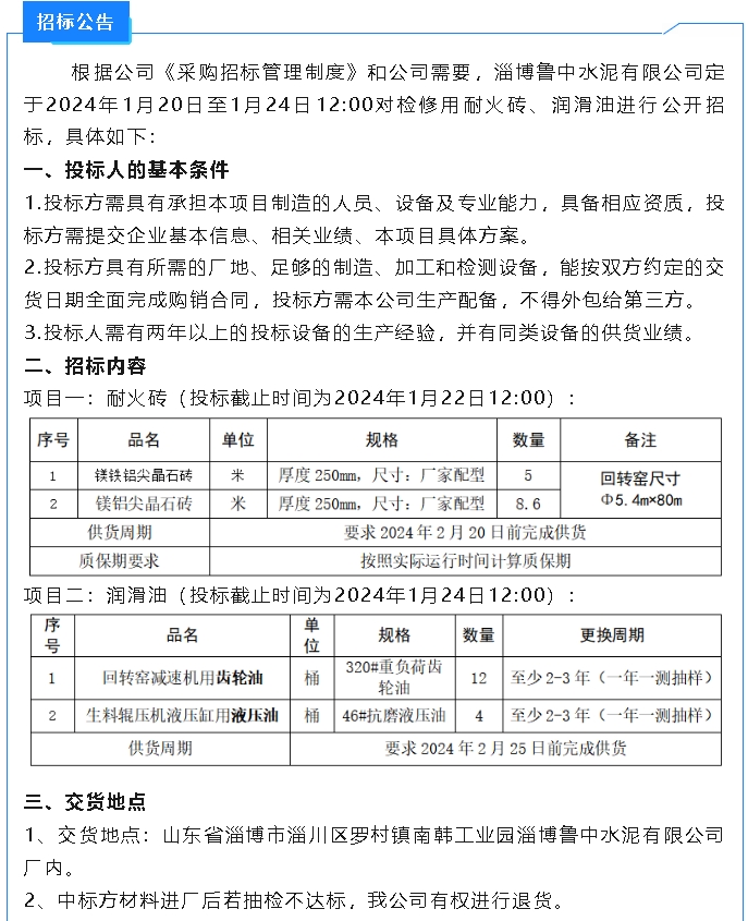 【招標公告】魯中水泥