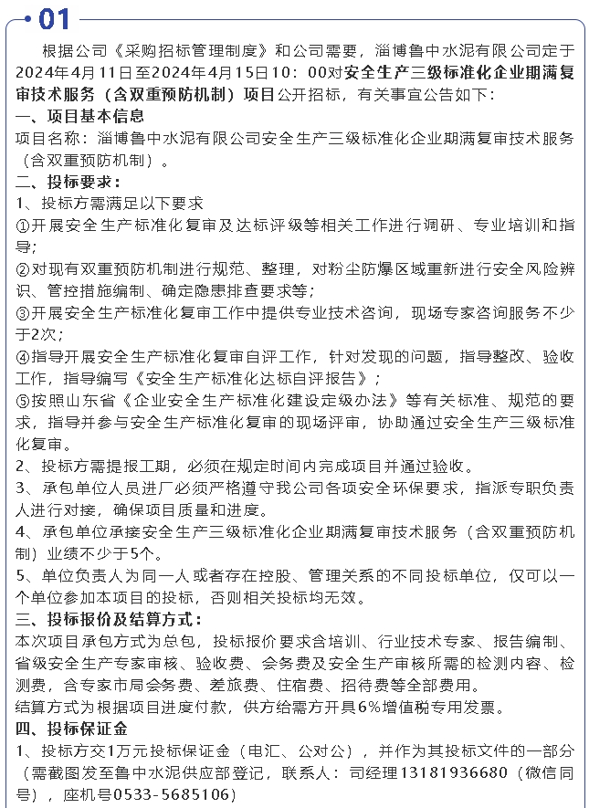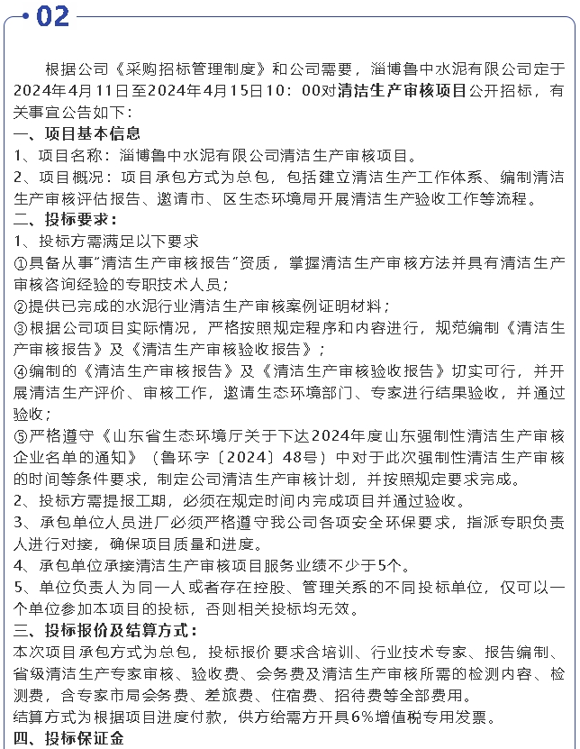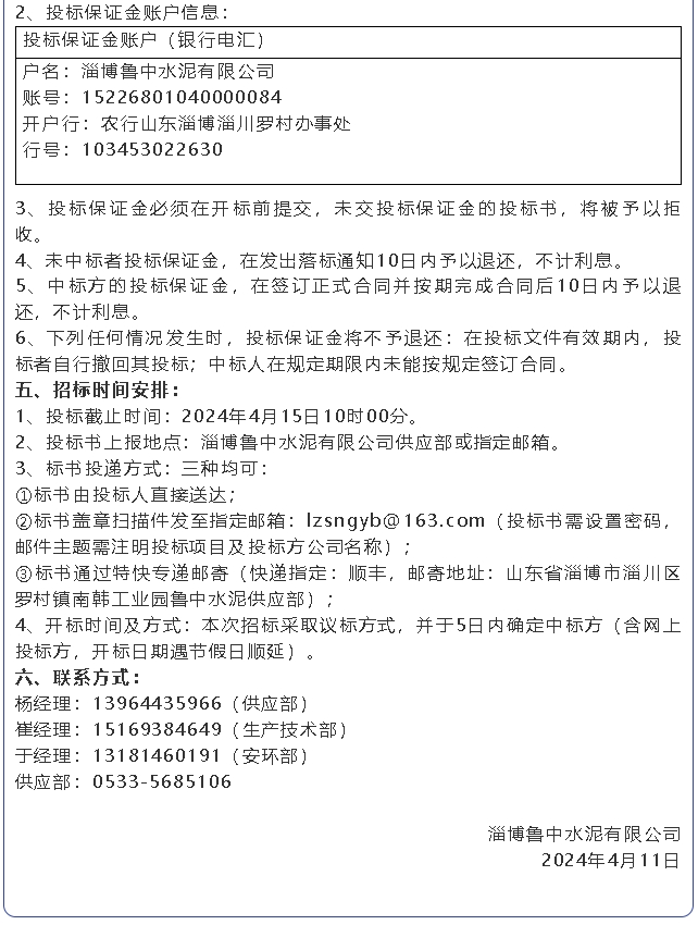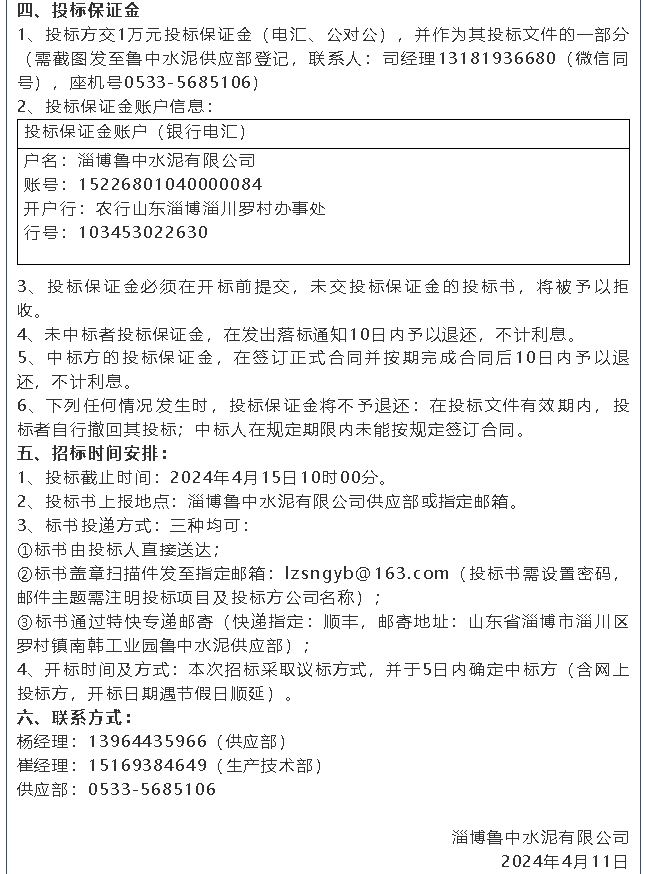 【招標(biāo)公告】魯中水泥