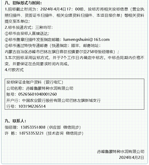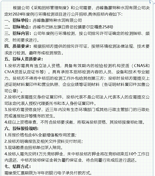 【招標(biāo)公告】魯蒙水泥