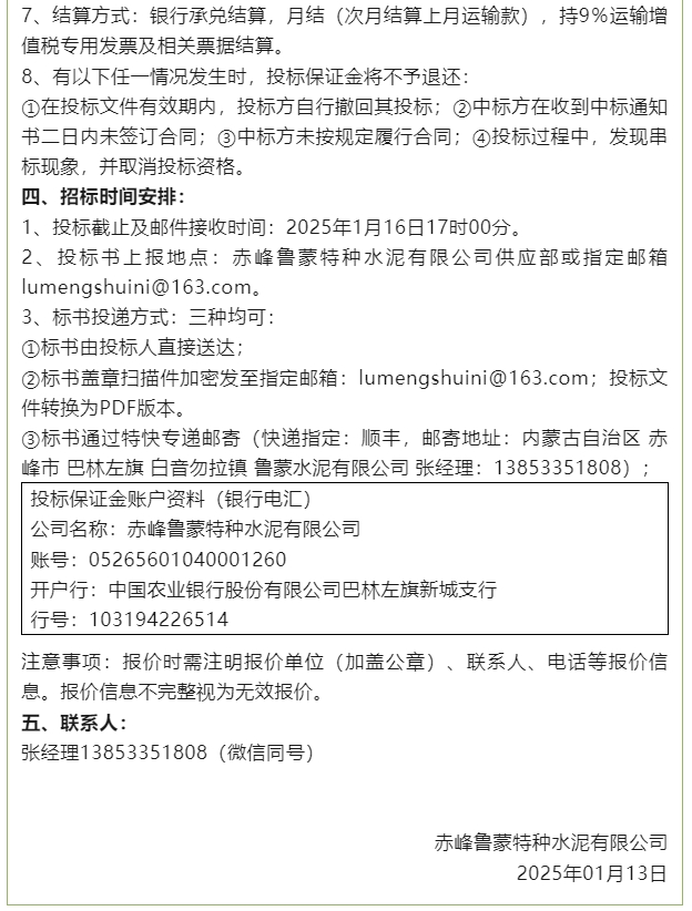 【招標公告】魯蒙水泥、重山思沃瑞