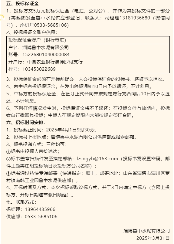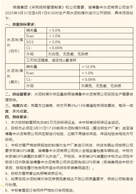 【招標(biāo)公告】魯中水泥