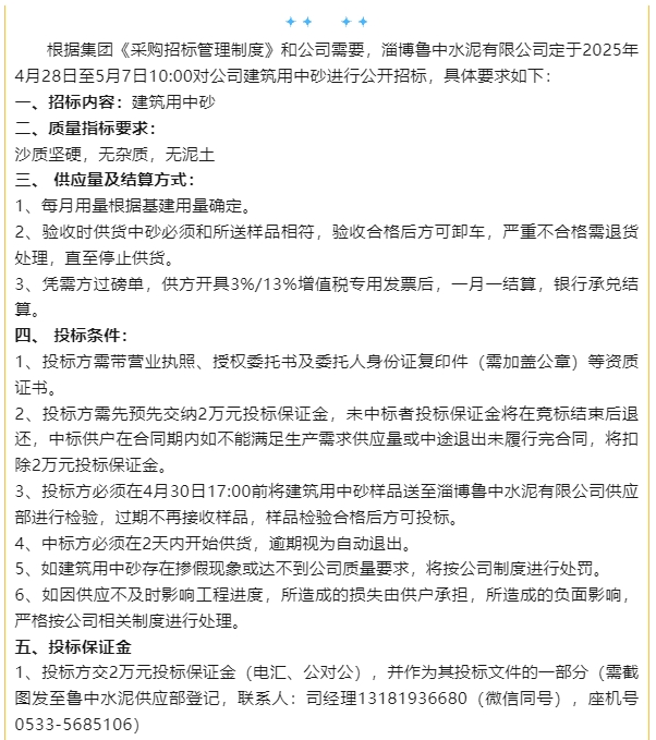 上一篇:【招標公告】魯中水泥、重山思沃瑞