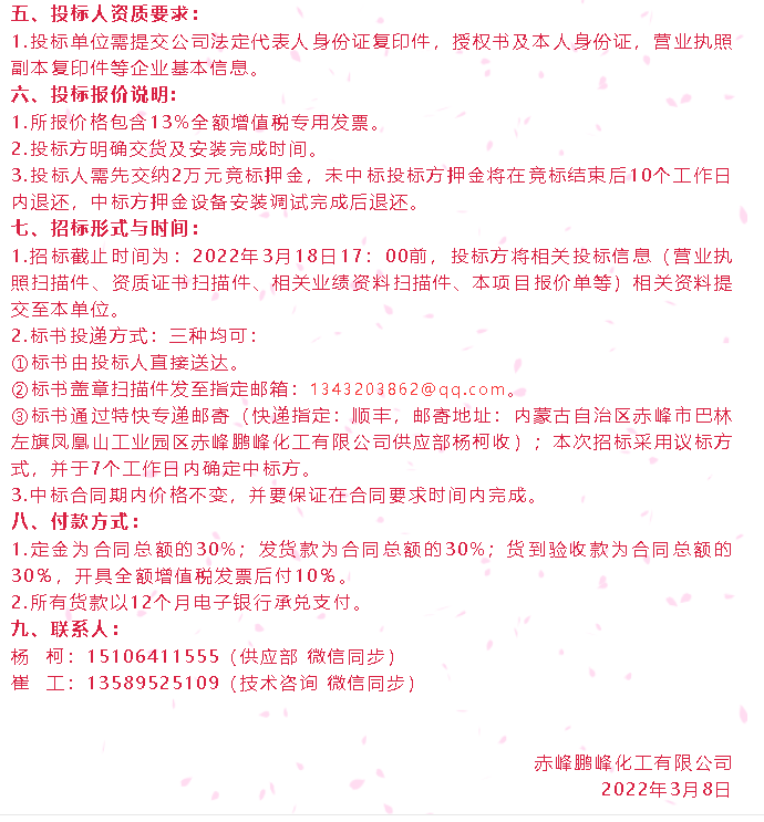 下一篇:【招標公告】鵬峰化工稱重儀表、柴油發(fā)電機、干式變壓器招標