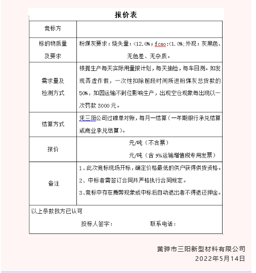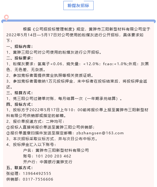 【招標(biāo)公告】黃驊三陽粉煤灰、礦粉運(yùn)費(fèi)招標(biāo)
