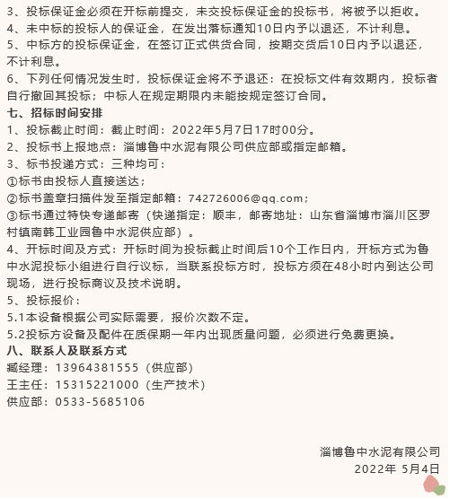 【招標(biāo)公告】魯中水泥