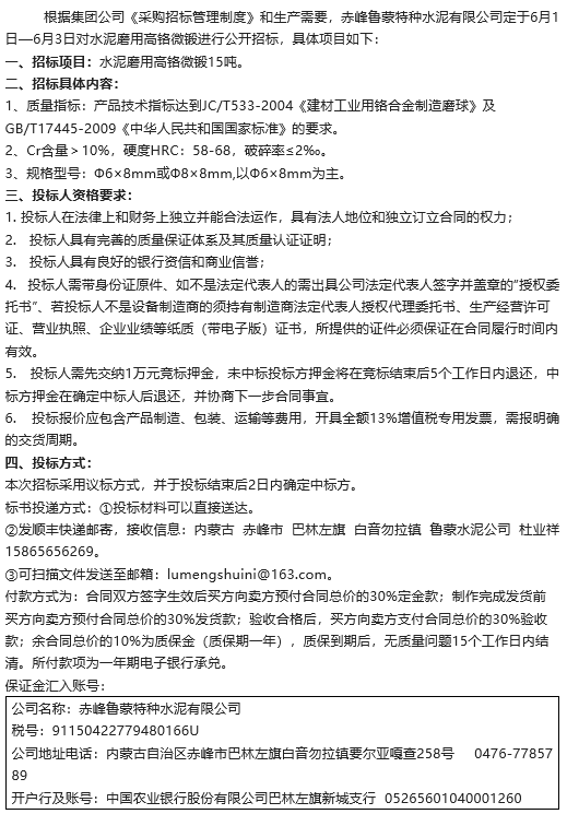 【招標(biāo)公告】魯蒙公司